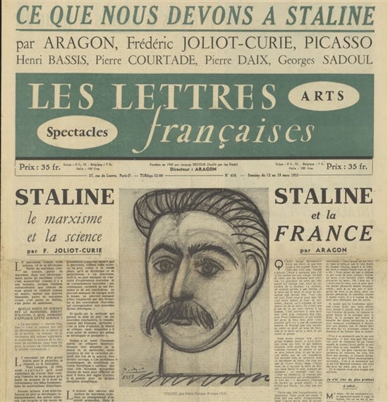 Yet there is a famous missing picture. His 1953 commemorative drawing of Stalin was lambasted, mainly by the Left, as being insufficiently heroic or dignified, has disappeared. Post-publication, the drawing was not exhibited and was probably destroyed by Picasso – a rare manifestation of regret. We can dismiss his later criticism of his own Blue Period as being too maudlin and too popular as being a tactical disavowal when he wanted to depict himself as a cutting edge adventurous formalist rather than a holdover of sentimental Post-Impressionism. He held on to a few Blue Period paintings and never bought back anything of this period, when he could have afforded to buy and then destroy the art he claimed to disdain.