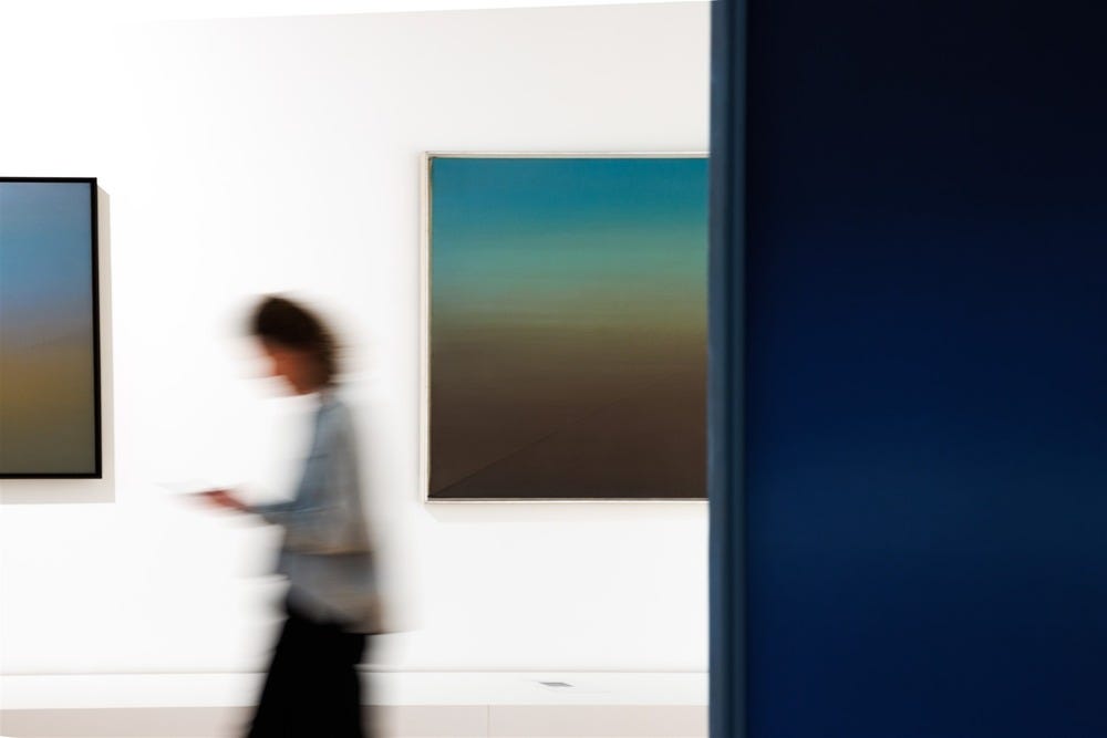 Verheyen moved from achromes (without colour) to monochromes (one colour) thence to panchromes (all colours). The current exhibition has abstract paintings by Verheyen that are marvels of execution, with transitions of colour on flawless surfaces, so gentle that they seem breathed into existence. They were, however, painted in lacquer using brushes alone, not airbrushes. Gentle transitions of pure colour invite us to watch and wait, our responses changing as our gaze moves over the surface and eventually through it. ZERO artists made picture by placing surfaces over candle flames, which left smoke traces. This “fumage” technique initiated by Wolfgang Paalen in the 1930s. At that time fumage was used to create starting points for automatist Surrealist imagery, conversely, ZERO artists wanted their fumage images (made around 1960-1) to remain empty and uninterpreted. The dim, hazy and grainy forms of fumage are close to Verheyen’s paintings at this time.