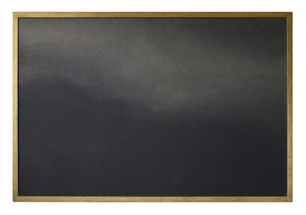 Much of the same feeling is carried over into Verheyen’s canvas, but without direct description but through evocation of the dimness. Verheyen’s black paintings on stained grounds have some aspects in common with Rothko’s most sombre canvases, used to aid spiritual contemplation. There are obvious parallels with Chinese scroll paintings in ink wash. Clearly Verheyen had such misty mountain views in mind when he painted some of his paintings of the 1960s. The later paintings have very simple geometric planes or divisions which are intended to exclude any potential images or even indications of landscape, horizon or structures. The gradation of colours encourages us to scrutinise them closely and become lost in the transitions, thereby losing our natural tendency to search out specific details and to relate them to the whole. The whole is beyond – if not our understanding – at least our focussed attention.